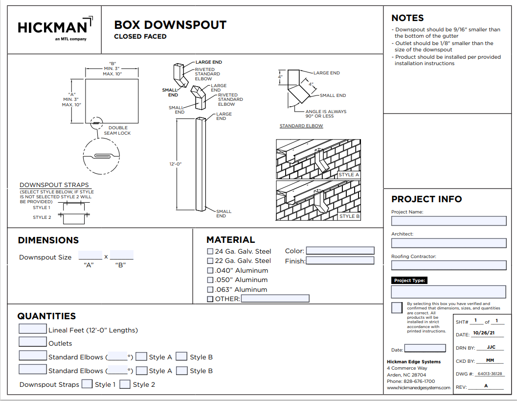 Box Downspout Order Specification (2022)