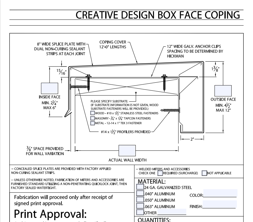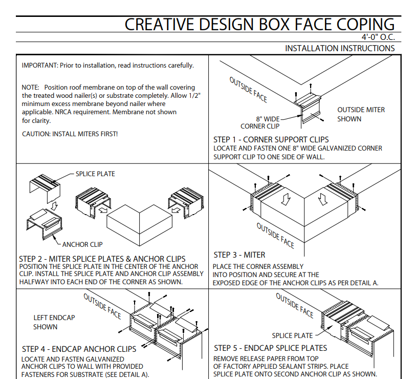 Our Creative Desing Box Face Coping is designed to complement high quality buildings such as financial institutions, universities, schools and churches. This product looks great, but doesn't require complicated installation. Creative Design Series Coping features the same fast and easy installation as our other products, while providing a simple cornice profile to the roof edge.