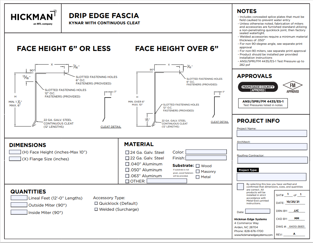 Drip Edge Fascia (Kynar) Order Specification (2022)