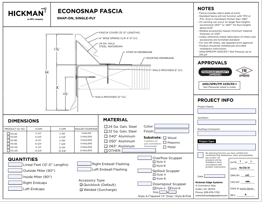 EconoSnap Fascia Order Specification