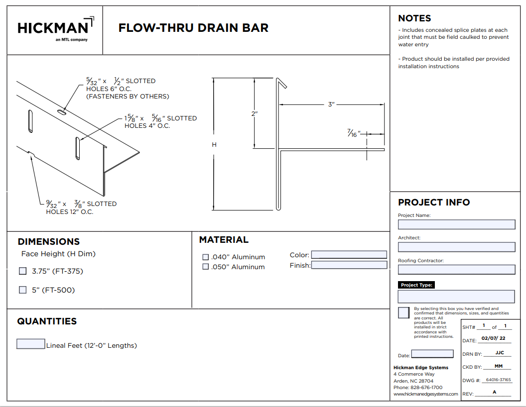 • - Pre-punched, slotted holes allow for proper thermal movement of the materials and ensure correct fastener placement and spacing