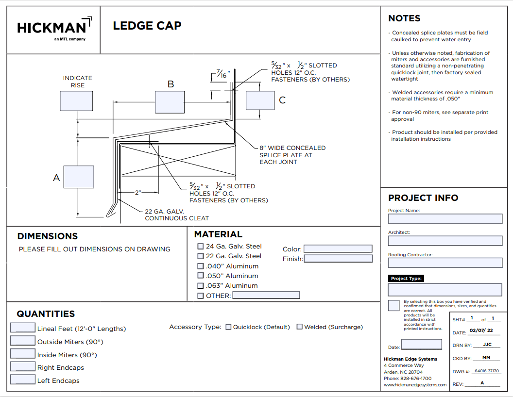 Hickman's Ledge Cap is available in various face heights and depths to meet specific building coverage requirements. Key features include:
