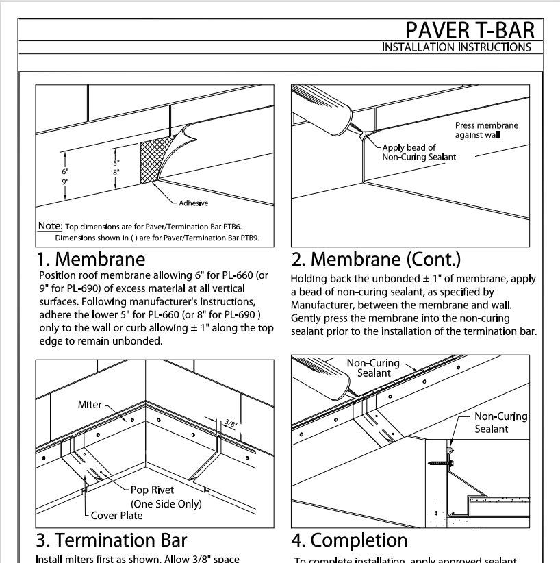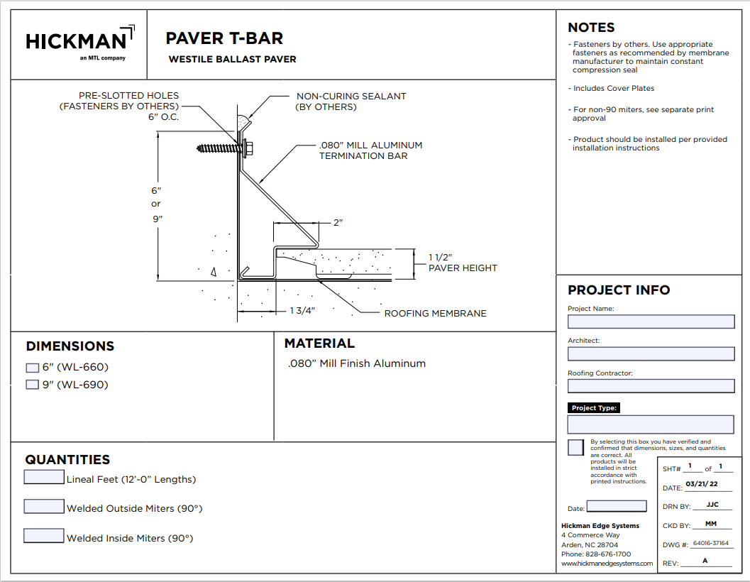 Hickman's Paver Termination Bar is designed for roof systems using Westile ballast paver systems. Key features include: