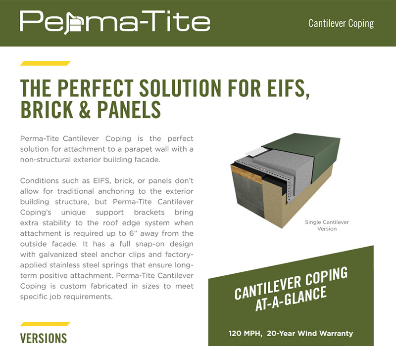 Hickman's PermaSnap Cantilever Coping is an ideal solution for attachment to parapet walls with non-structural exterior facades. Key features include: