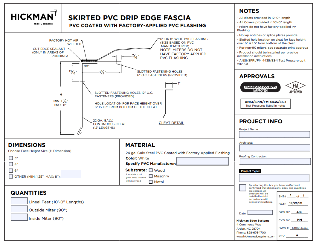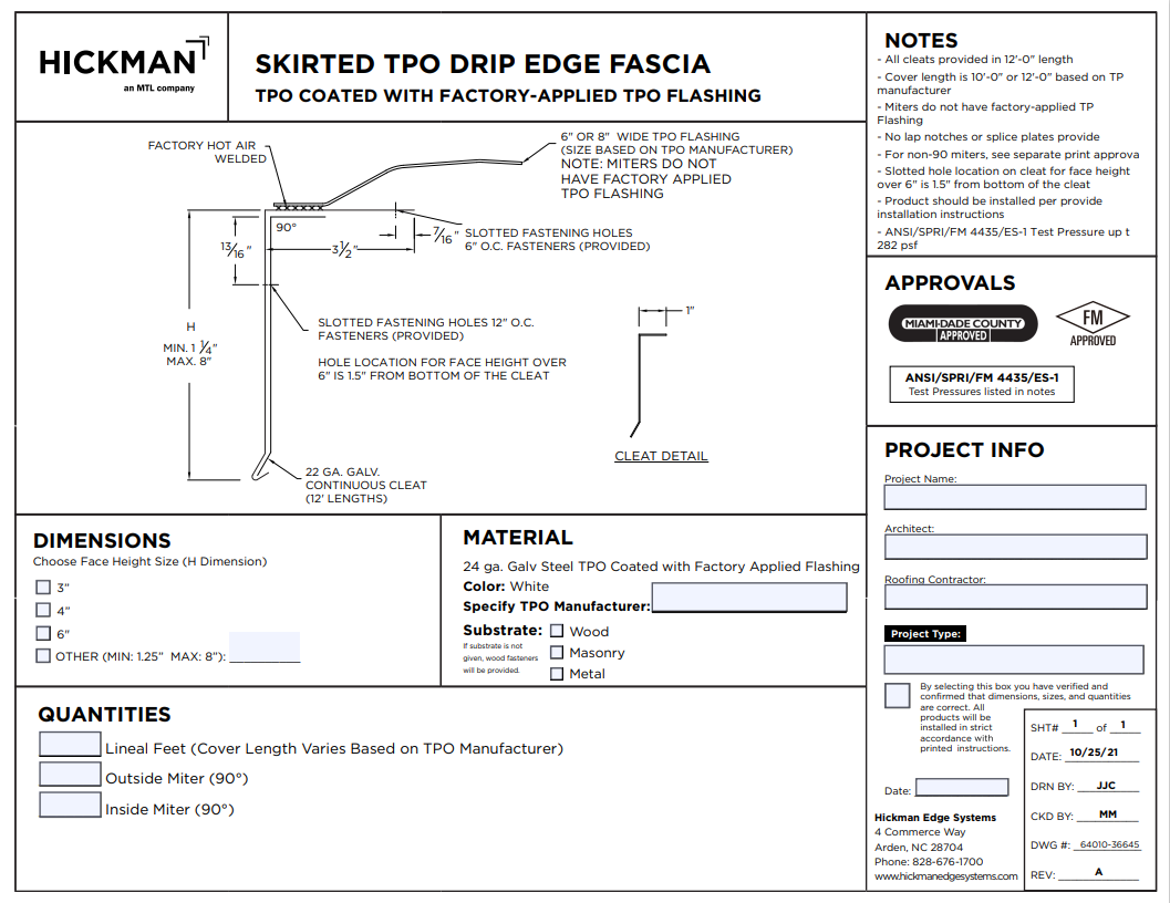 Skirted TPO Drip Edge Fascia Order Specification (2022)