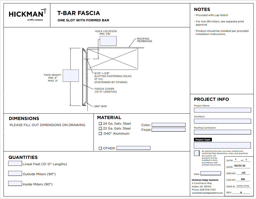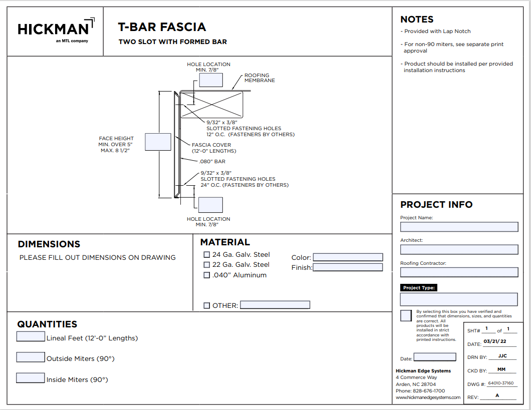 T-Bar Fascia is a versatile and affordable roof termination system, ideal for both low and steep sloped roofing applications. Key features include: