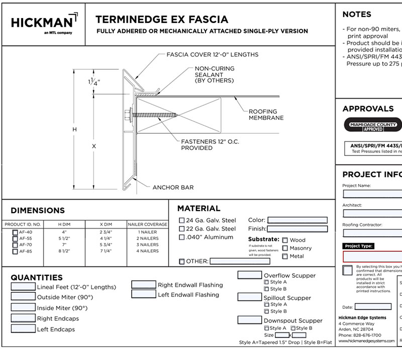 Division 7 CSI Specification Guide: Snap-on Fascia for Single-Ply Membrane Systems