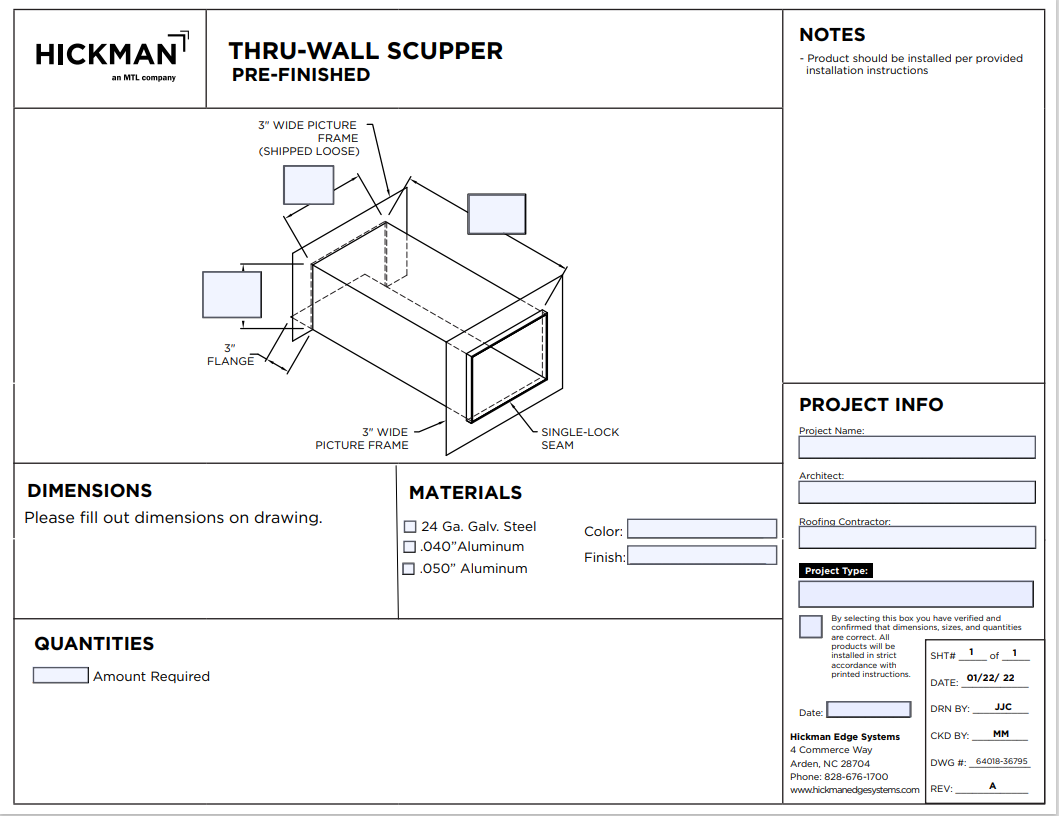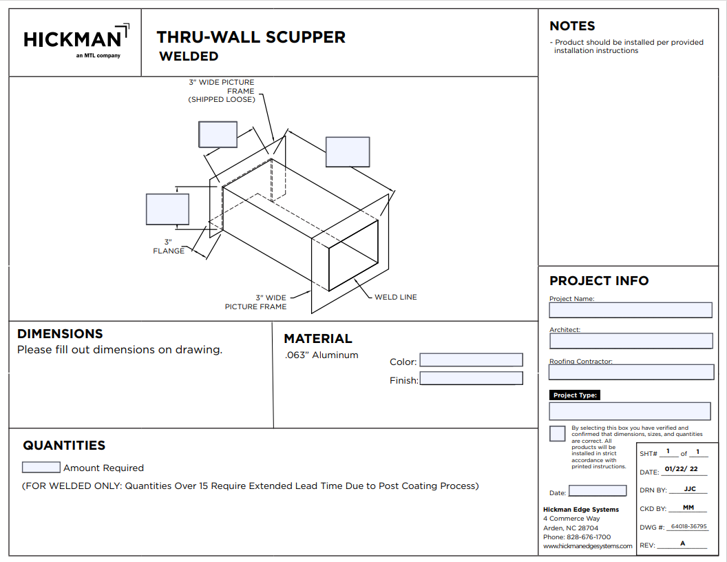 Pre-Finished Thru-Wall Scupper Order Specification (2022)