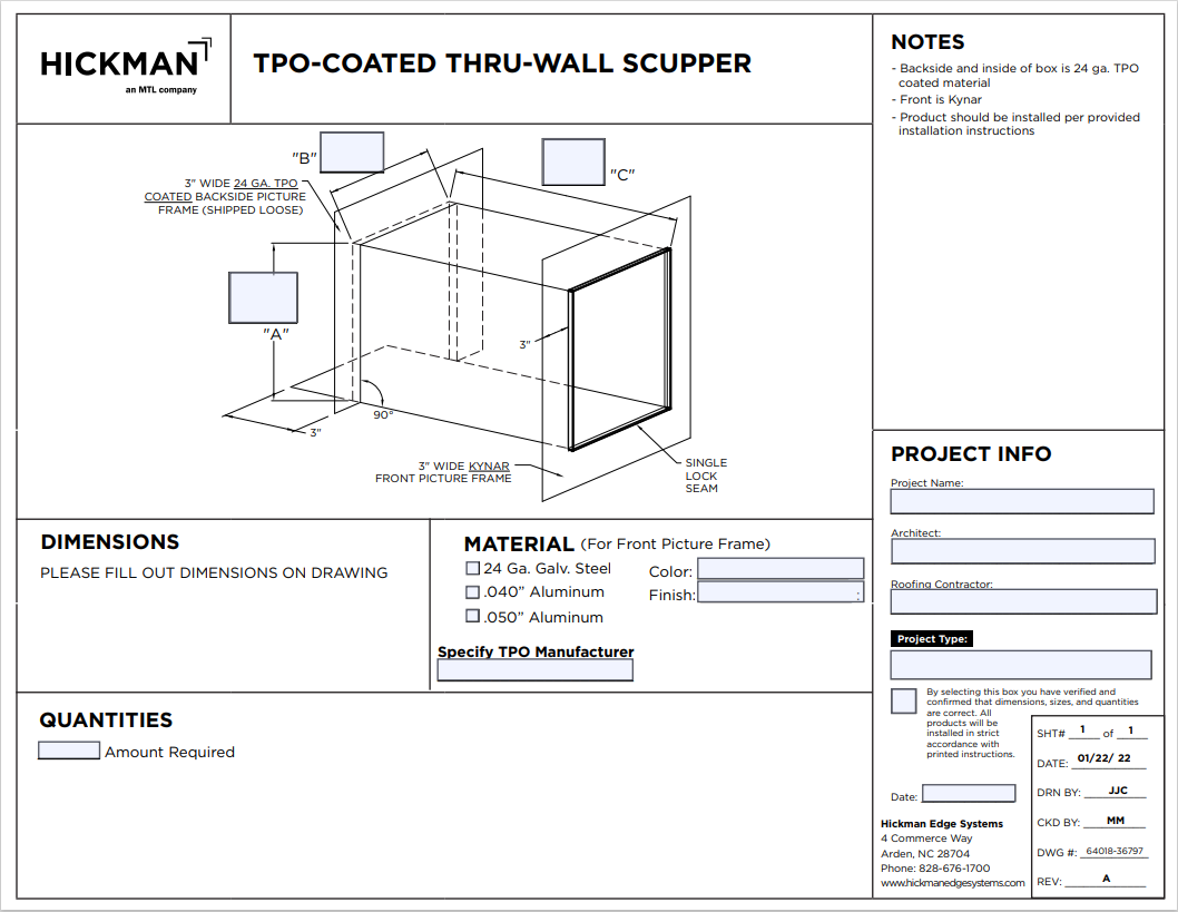 Thru-Wall Scupper (TPO Coated) Order Specification (2022)