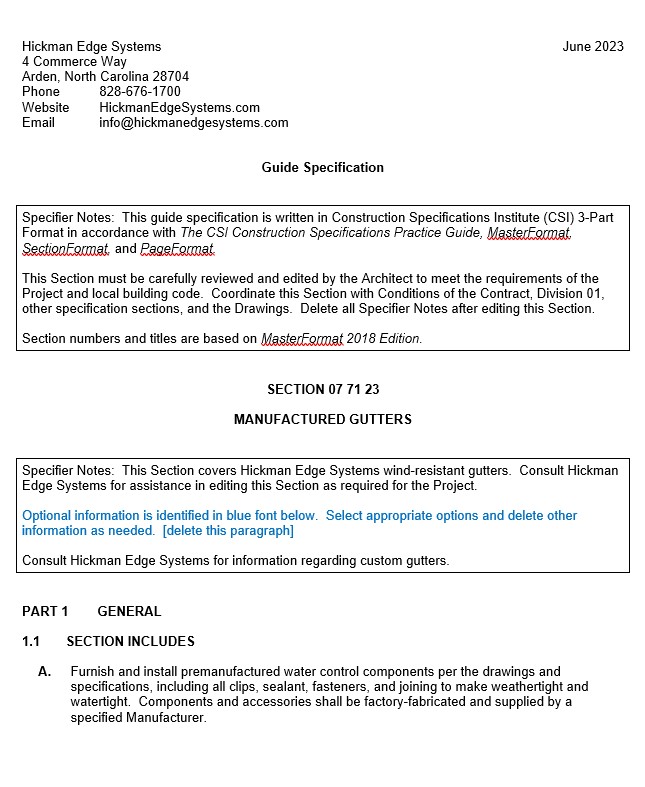 Division 7 CSI Specification Guide: Gutter and Water Control